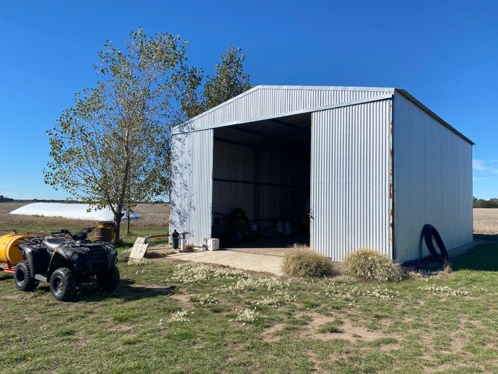 Un galpón con piso de material, electricidad, bomba sumergible.
