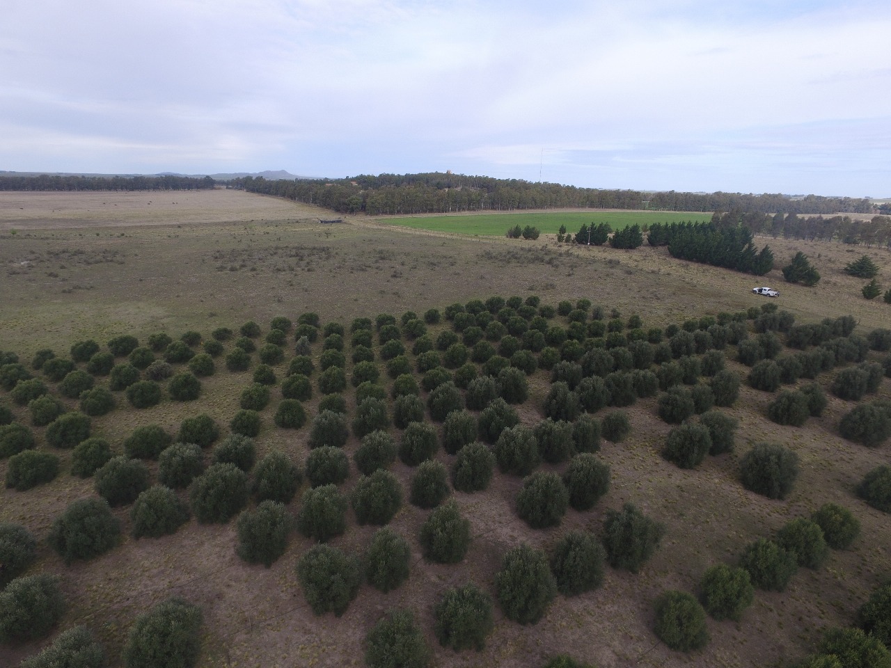 Tiene 20 has. implantadas con Olivos con sistema de riego por goteo.